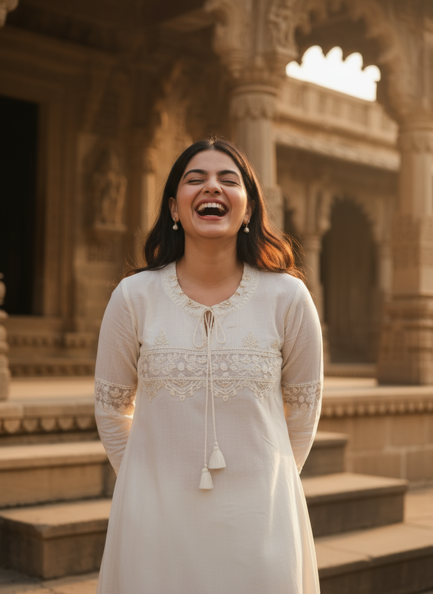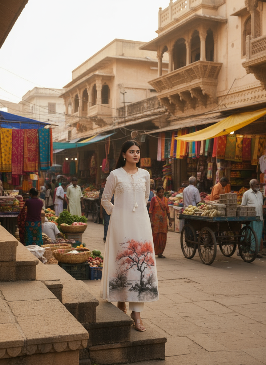 Ombré Cotton Dress with Hand-Painted Kalamkari Yoke